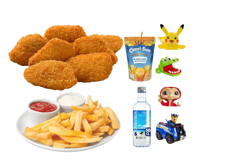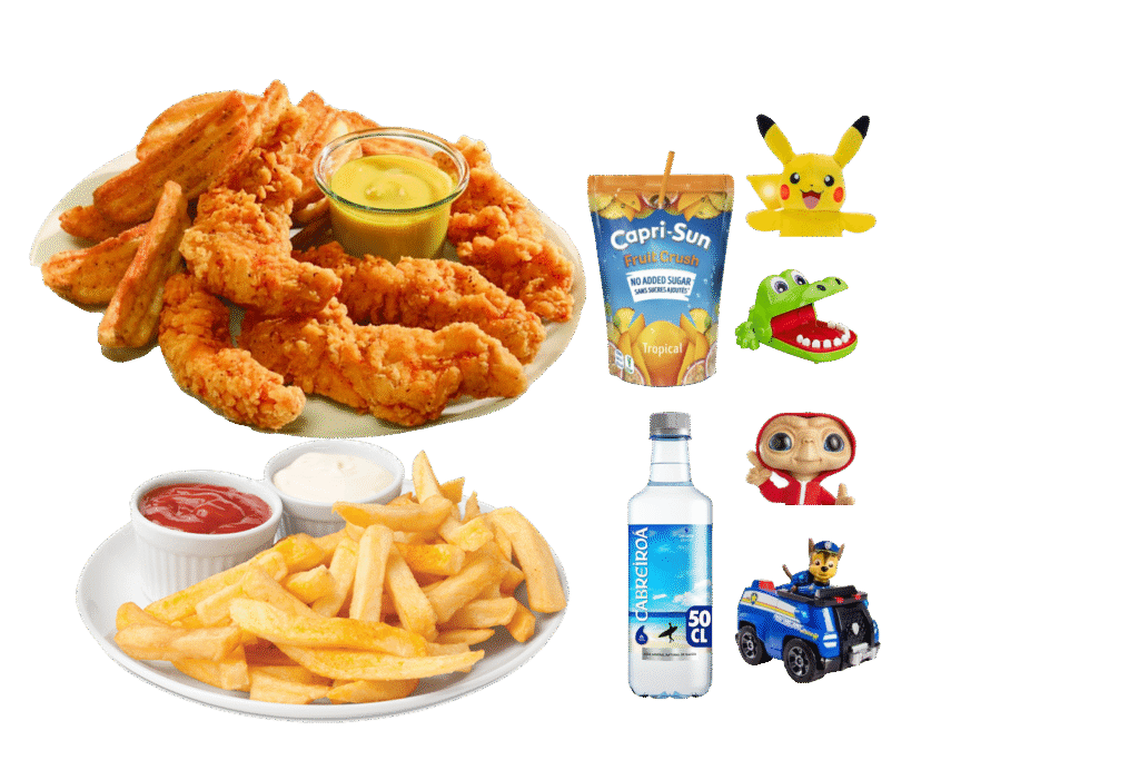 Tenders de Pollo , Patatas , Zumo/Agua, Un juegette